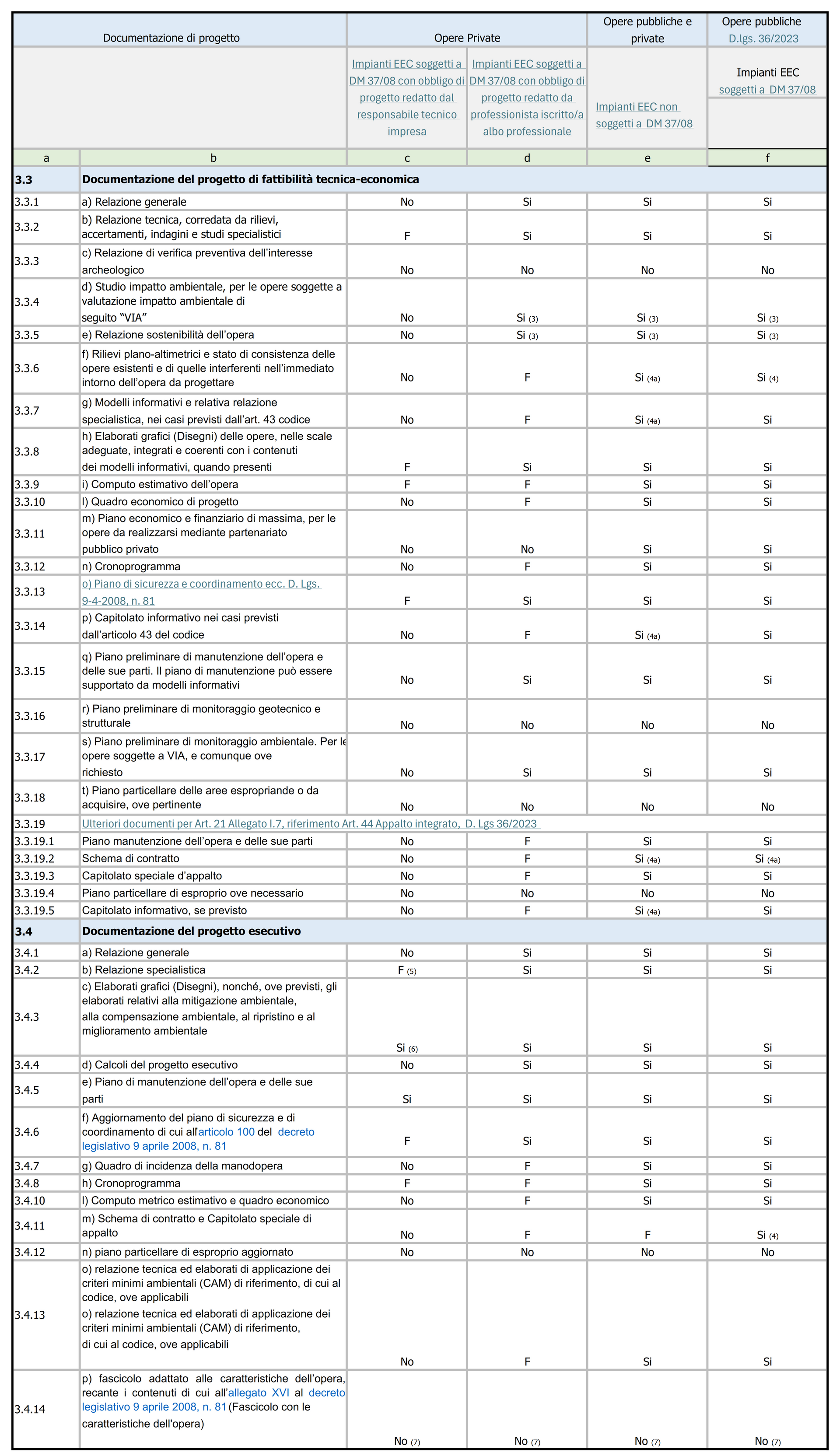 (3) Se l’opera consiste solo nella realizzazione degli impianti EEC, in genere è a carico del/della progettista degli impianti EEC (4) Se previsto nel bando di gara o da accordi tra le parti.